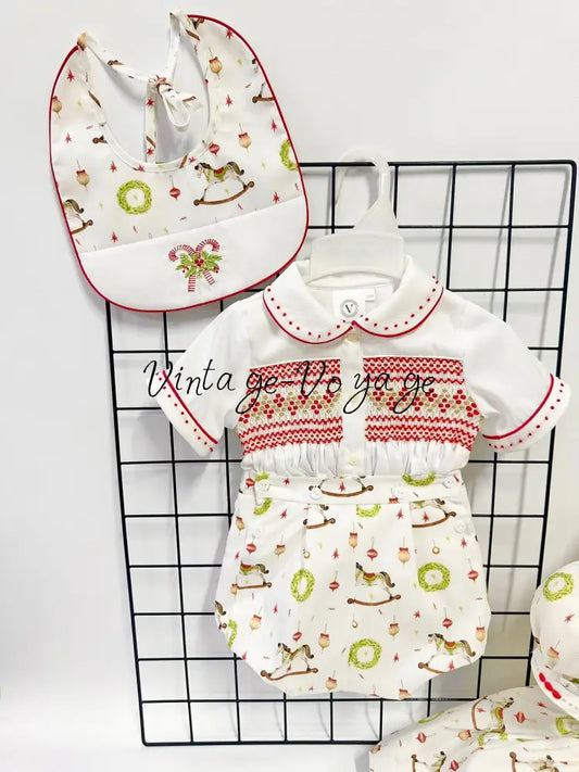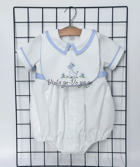 Dress up your baby boy as a tiny sailor in our sailor-inspired outfit or put him into a royalty-inspired hand-smocked set; there are a variety of available options for you. In addition to that, we have teeny tiny rompers with bibs for your newborns. Your cute little human will surely pull off the most fashionable look by carrying out dresses a little too well.