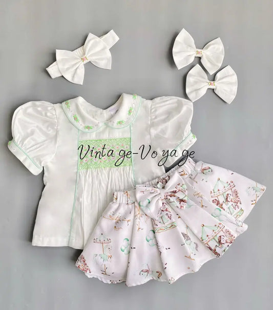 From hand-smocked designs to the beautiful rompers, we got you all covered up to get the perfect outfit set for your little girl. Be assured, all of our packages are quality checked before dispatching to maintain the high-quality standards of the Vintage Voyage. What kind of baby girl outfits do we offer? Well, here’s a list of our top picks,