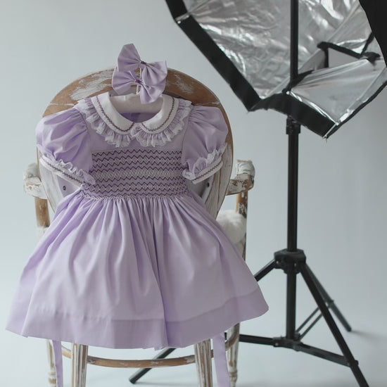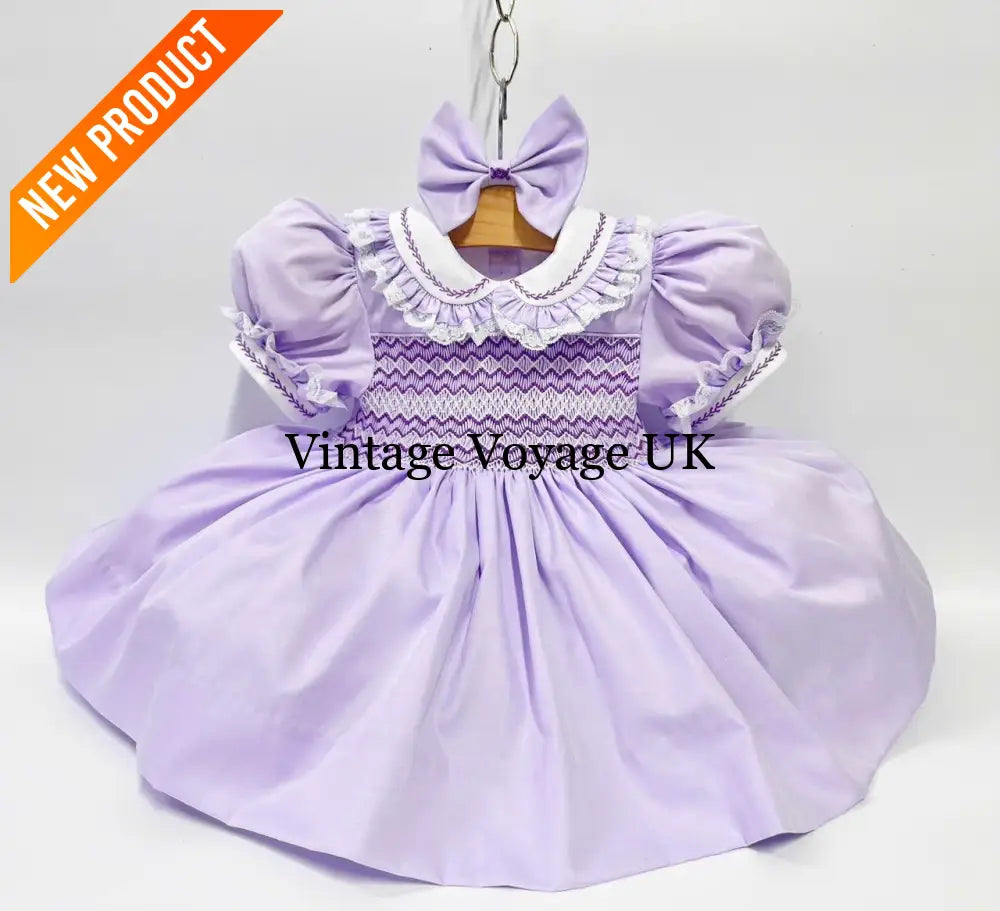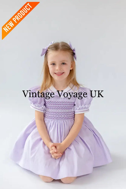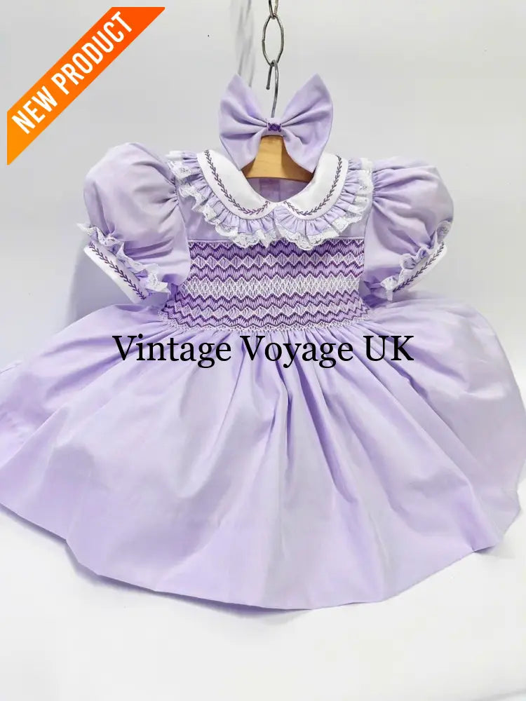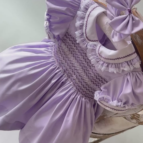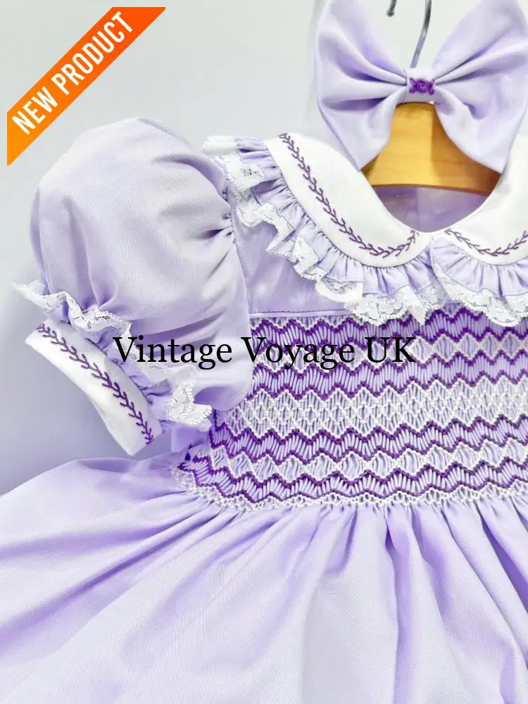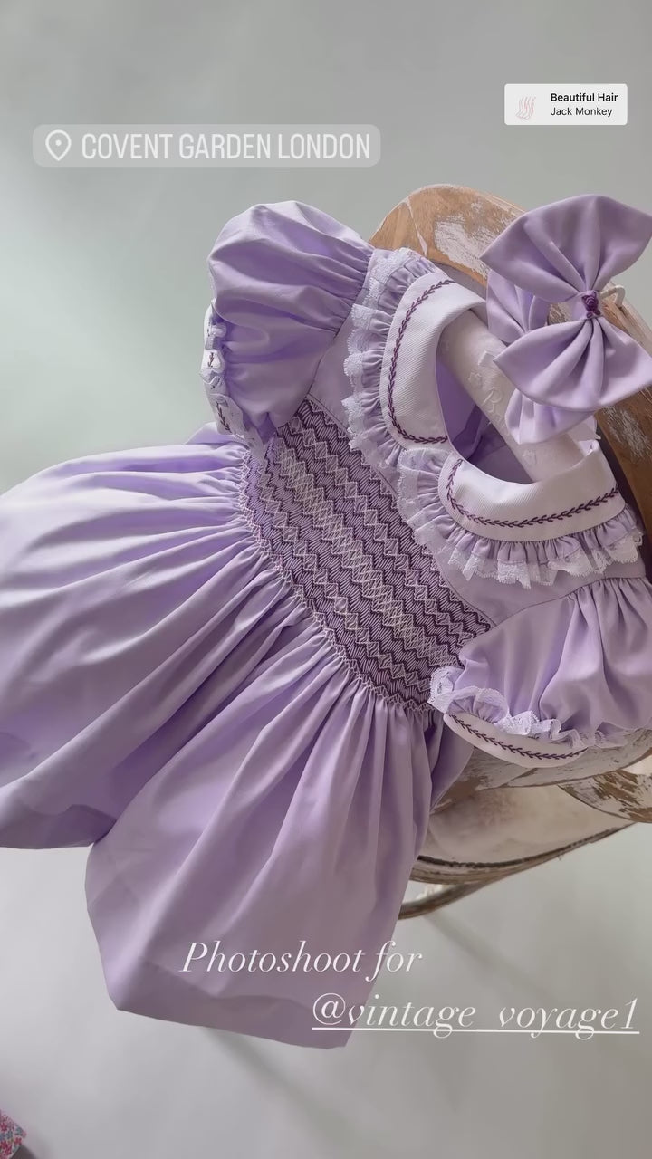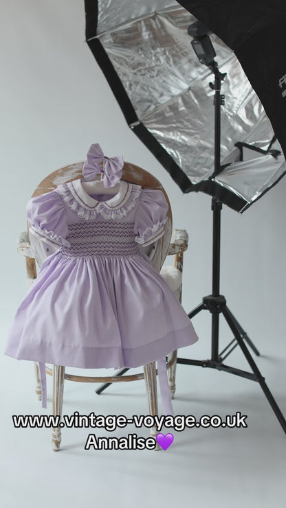 NEW🤩ANNALISE LILAC💜HAND-SMOCKED🧵🪡DRESS & HAIR ACCESSORIES🎀