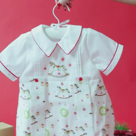 Hand Embroidered Rocking Horse On The Chest & On The Bib